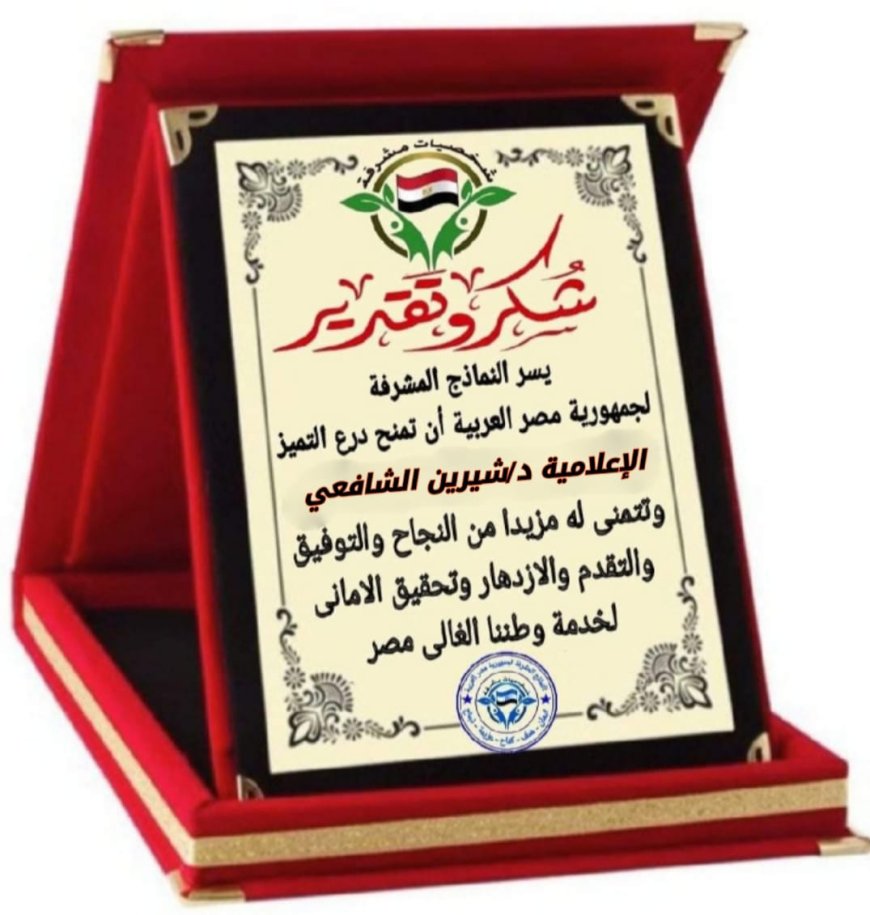 كرّمت مبادرة «نماذج مشرفة» الإعلامية د. شيرين الشافعي، تقديرًا لمسيرتها المهنية في العمل الإعلامي، ودورها في تقديم محتوى توعوي، إلى جانب مشاركاتها في الأنشطة المجتمعية والتطوعية.
